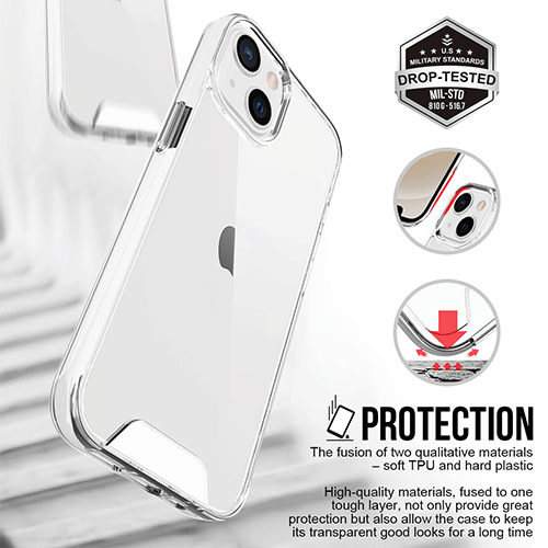 광학적으로 투명한 폴리카보네이트와 유연한 TPU 소재의 혼합으로 제작되었습니다. 얇고 가벼우며 잡기 쉽습니다. iPhone을 긁힘과 낙하로부터 보호하기 위해 제작된 투명한 낙하 방지 전화 케이스.